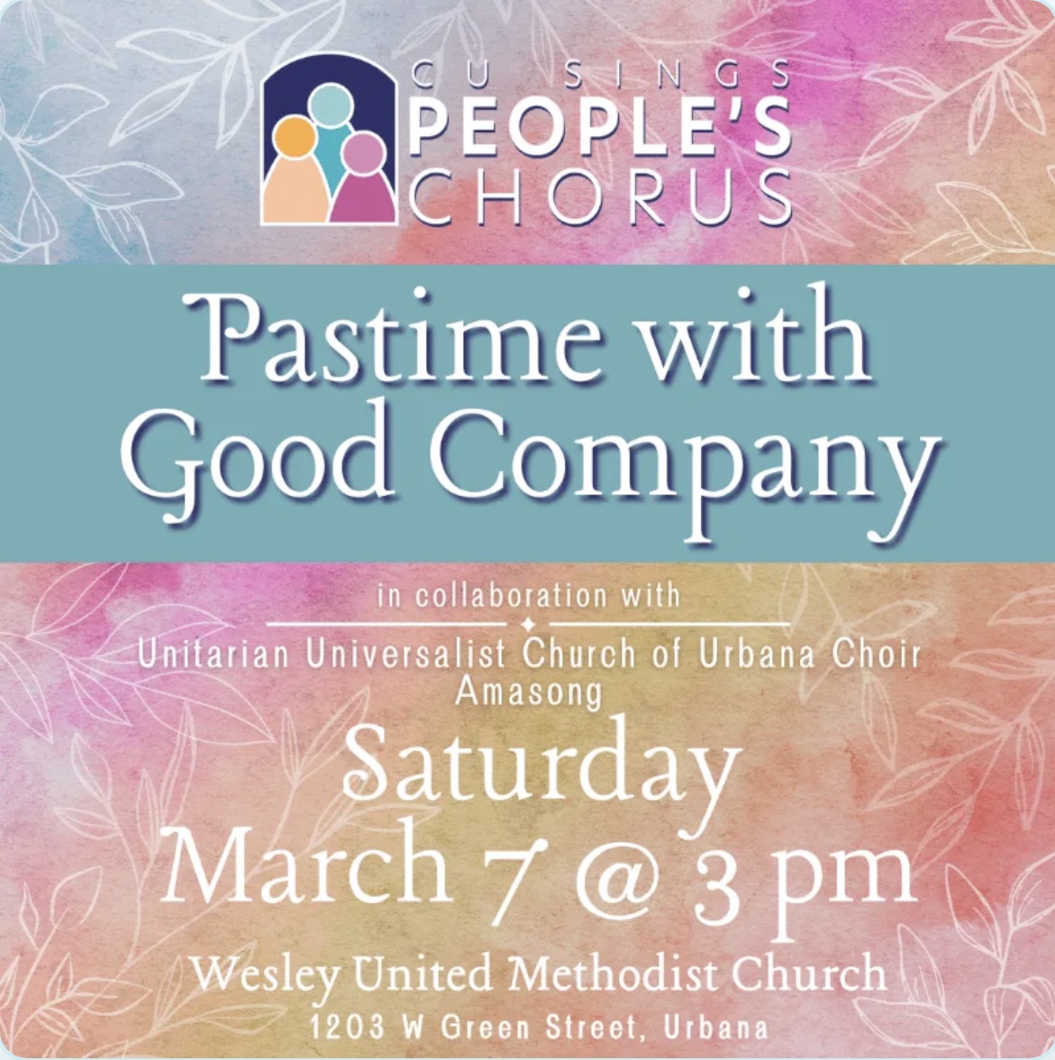 Saturday, March 7 at 3pm at Wesley United Methodist Church in Urbana (corner of Green and Goodwin).